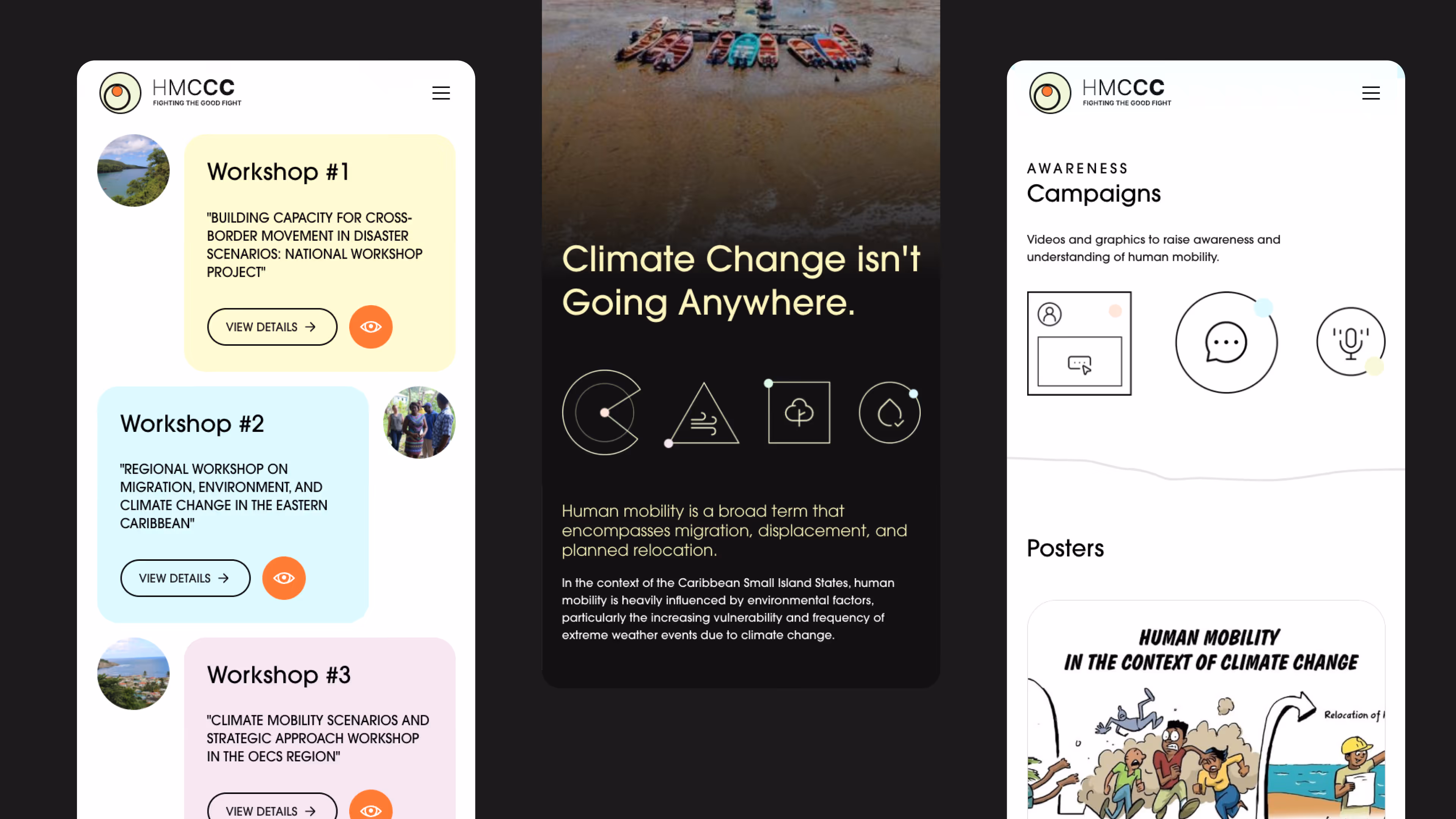 The challenge was to design a website that could hold complexity without becoming inaccessible. The HMCCC (Human Mobility, Climate Change & Displacement) initiative needed a digital presence that could inform, convene, and sustain engagement across governments, researchers, and civil society, while remaining approachable and relevant.