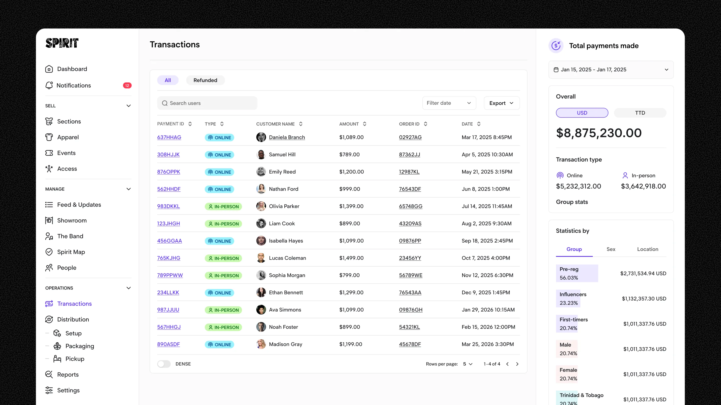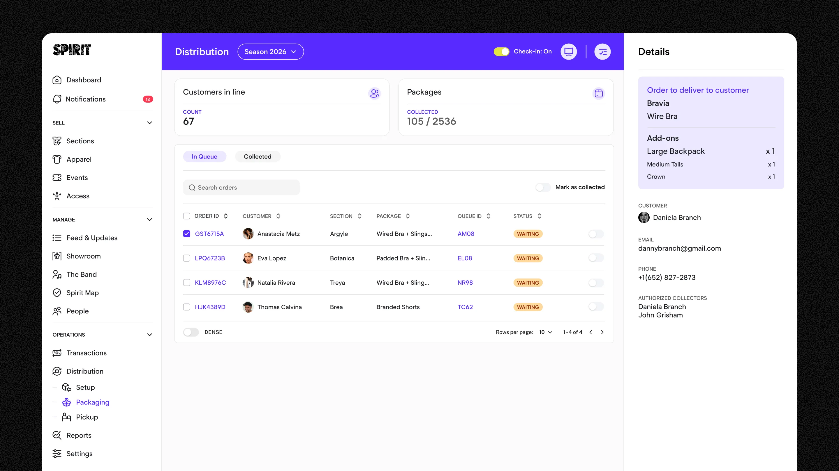 Administrators gain full operational visibility through centralized reporting, customer management, transaction tracking, and fulfillment oversight, allowing Spirit to make informed decisions and reduce risk during the most critical phases of the season.